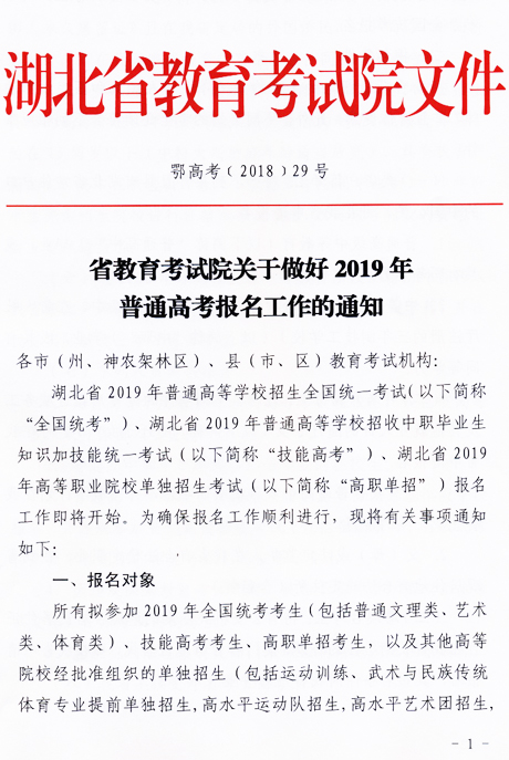 发布日期:2018-10-26 14:10:11 来源:湖北省教育考试院